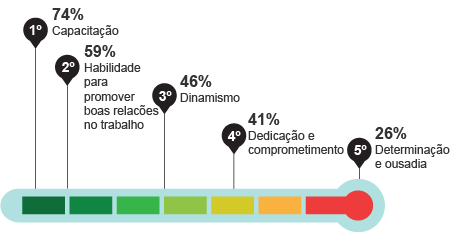 Como podemos ver, entre as principais habilidades, se destacam aquelas relacionadas à inteligência emocional. Sejam elas, intrapessoais (dinamismo e ousadia) ou interpessoais (promover boas relações no trabalho).